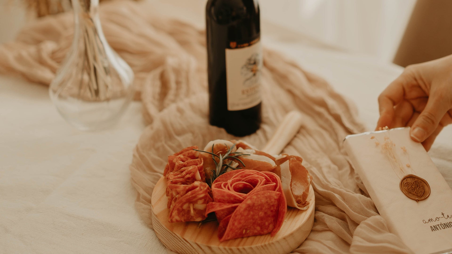 – tábua de madeira com enchidos frios